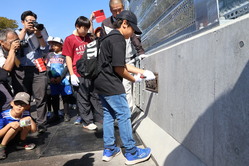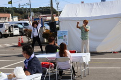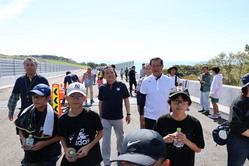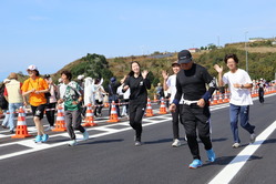 当日は秋晴れのもと、大人から子供まで150名の方に参加いただき、開通前の高規格道路の本線上をジョギングしたり、ウォーキングしたりしていただきました。また、大節婦川橋では、新冠小学校6年生の児童の皆さんが参加して、自分たちが書いた字の橋名板を取付するイベントも開催し、開通すると2度と体験することできない高規格道路上でのイベントを体験していただきました。本線上でのイベントが終了した後は、道の駅駐車場を利用したサブ会場でキッチンカーや新ひだか町で活動されている歌手の阿部卓馬さんの歌のステージを楽しんでいただきました。