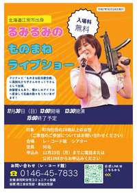 令和7年11月30日(日)午後1時半から、るみるみさんによるものまねライブショーを行います。