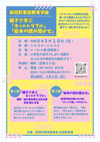 新冠町では、親と子、学校や地域が支え合い、安心して子育てができる地域づくりを進めるため、家庭教育学級を開催しています。