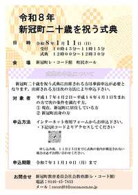令和8年1月11日(日)レ・コード館において「二十歳を祝う式典」を開催いたします。