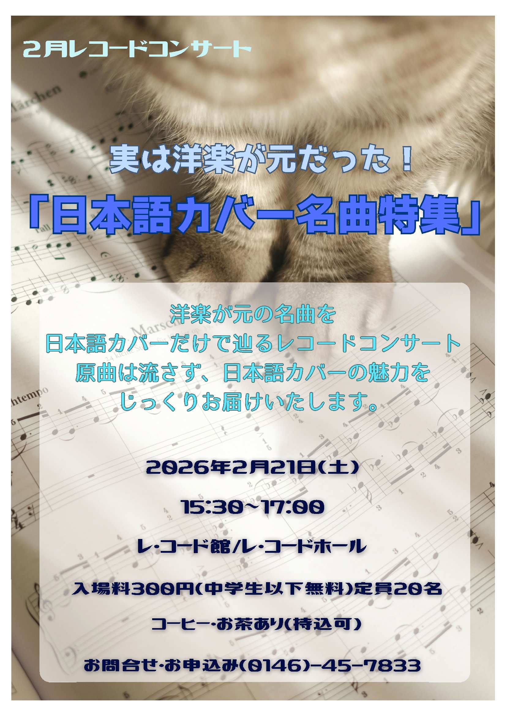 2月のレコードコンサートは「実は洋楽が元だった!日本語カバー名曲」特集です!